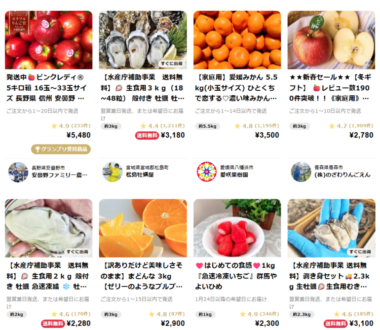 初回限定キャンペーンや送料無料商品、期間限定セールもあり、「いいものを、できるだけ安く」試したい方にぴったりの産直通販です。